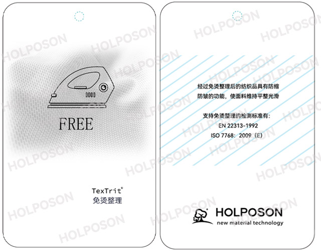 Textrit® Ironing Free 树脂是纤维素纤维及其混纺织物洗可穿免烫整理的无甲醛整理剂,主要应用于以衬衫、职业装、帽子为主的服装面料的防皱整理,赋予面料良好的防皱免烫性能,穿着时不受拘束,不易起皱,手感柔软。